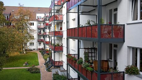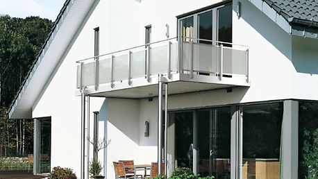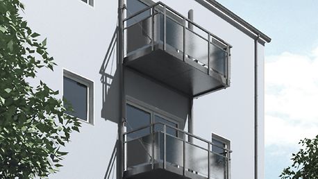 Консольно закрепленные балконы Schüco идеально подходят для стен, напротив которых не возможна установка фундамента из-за наличия, например, пешеходных дорожек, подъездных путей или автомобильных стоянок.