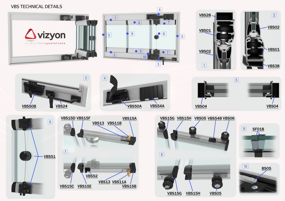 Система не имеет лишних деталей. Каждая составная часть конструкции решает свою задачу. Безупречную и бесперебойную работу системы запирания обеспечивает надежный механизм. При изготовлении используется фурнитура гладкая на ощупь. Задача системы Vizyon — удовлетворить запросы и потребности самых взыскательных клиентов.