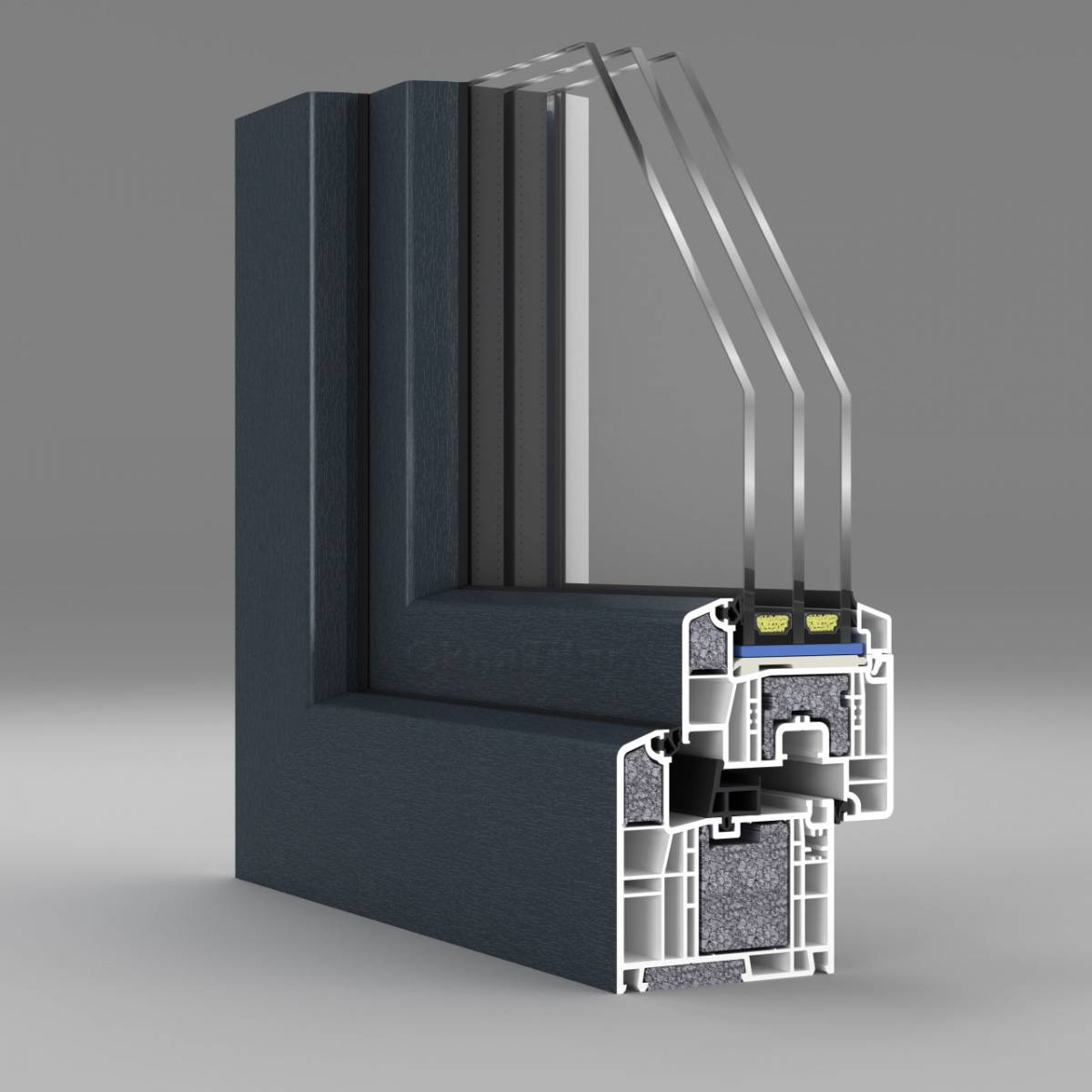 - 5-ти камерная система, монтажная ширина которой достигает 76 мм, два контура уплотнения позволяют обеспечить максимально высокий уровень теплозащиты и звукоизоляции.